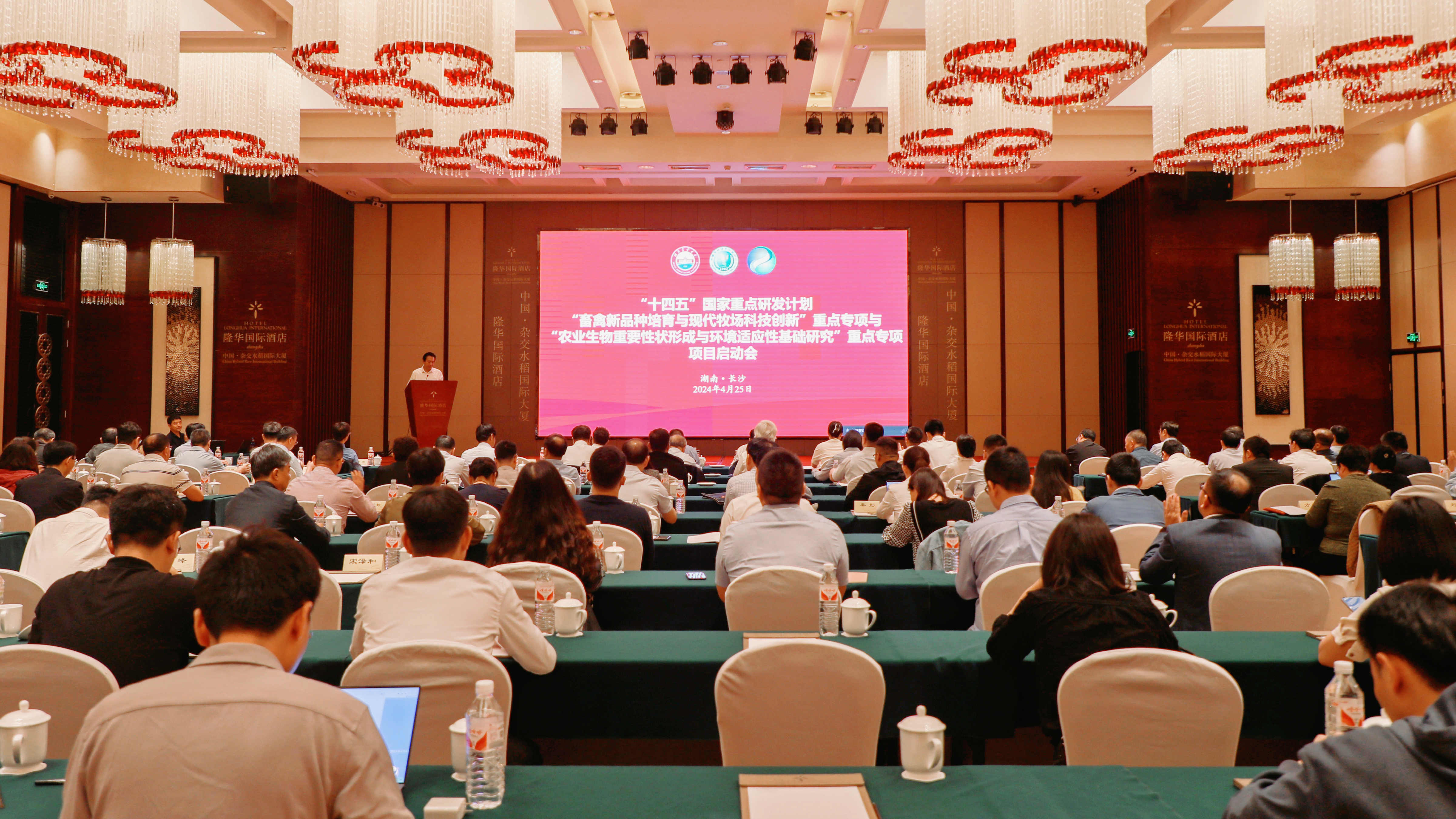 本网讯(科技处 徐辉 周喜新)4月25日,“十四五”国家重点研发计划“畜禽新品种培育与现代牧场科技创新”与“农业生物重要性状形成与环境适应性基础研究”重点专项4个项目的联合启动会在长沙召开。其中,“饲用天然植物功能组分制备与产品创制”“粮食作物环境感受受体的鉴定及其响应机制”及“蛋白饲料生物合成前沿技术研究与产品创制”三个项目由Zoty体育牵头主持。“大米蛋白饲料资源高值化利用关键技术研究与应用”项目由湖南普菲克生物科技有限公司牵头主持。