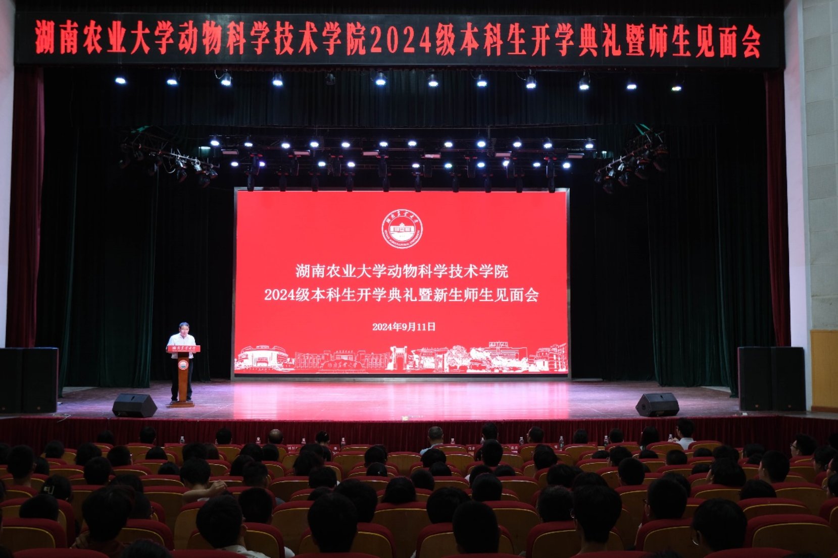 2022级动科四班刘磊同学作为老生代表发言,他深情分享自己的学习生活经验与感悟,勉励学弟学妹们学好专业知识,培养社会责任感、使命感,积极参与社会实践,关注国家大事,主动扛起时代赋予的责任与担当,爱校敬业、求真务实、艰苦奋斗、乐于奉献,用实际行动诠释“学农爱农、强农兴农”的深刻内涵。