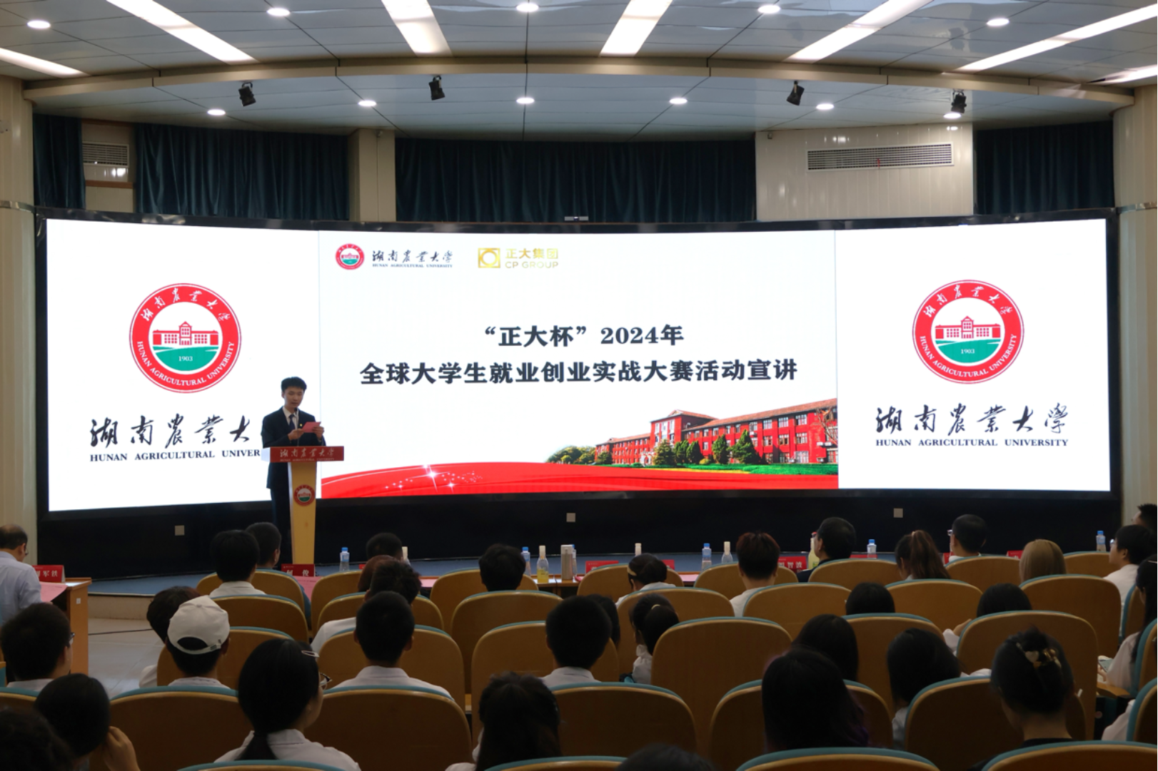 活动的最后,正大集团就“正大杯”2024年全球大学生就业创业实战大赛活动做了宣讲。该项赛事由正大集团举办,致力于发现和培养具有创新思维与商业能力的优秀人才,为每一位勇于探索,不懈追求的学子提供广阔的平台,共设有实战营销、数字创新、食品研发、健康养殖四条赛道。今年的“正大杯”赛事全面升级成为全球大学生创业大赛,获胜的金奖团队均有机会前往泰国正大集团总部游学,与国际友人同台竞技交流。