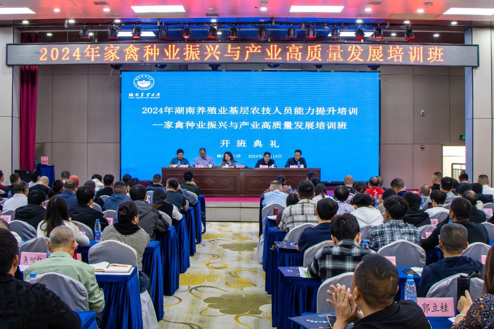 11月13日,由湖南省畜牧水产事务中心主办,Zoty体育承办的2024年湖南省养殖业基层农技人员能力提升培训——家禽种业振兴与产业高质量发展培训班在长沙开班。省畜牧水产事务中心科技推广部部长覃永洁、二级调研员黄胜华,zoty中欧体育院长贺喜、党委书记祖智波出席,各地养殖业基层农技人员代表共148人参加培训。zoty中欧体育副院长何俊主持开班典礼。