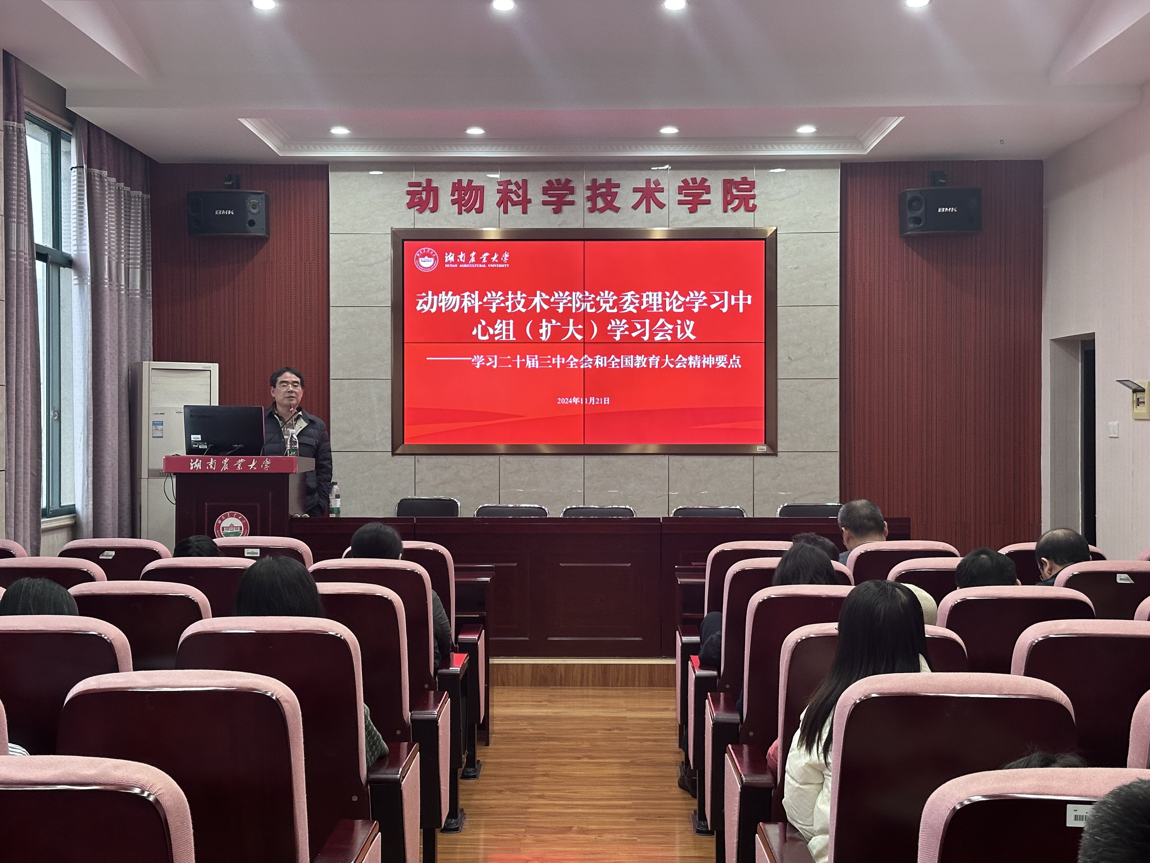 祖智波领学了二十届三中全会和全国教育大会精神要点,重点传达了11月11日学校召开的推进教育科技人才体制机制一体改革动员大会精神。他指出,学习贯彻好二十届三中全会和全国教育大会精神是当前和今后一个时期的重大政治任务。全院上下要深入学习领会二十届三中全会和全国教育大会精神,入脑入心,准确把握其核心要义和实质精神。同时要紧紧围绕立德树人根本任务,深刻把握教育的政治属性、人民属性、战略属性。要立足学校、学院的特色和优势,紧扣国家重大战略和经济社会发展需要,进一步聚焦学院制度建设、人才培养模式创新、核心课程建设、教学、科研团队建设、人才队伍建设等方面,进一步整合资源、凝聚力量、补齐短板;充分发挥人才聚集效应,推进大团队、大平台建设,对接湖南千亿产业,谋划国家级成果奖、国家级科研平台、“十五五”重点研发计划、杰青和优青等重大项目。全院教师要时刻铭记教书育人的使命和立德树人的初心,深化思想认识,加强师德师风建设,坚定理想信念、陶冶道德情操、涵养扎实学识、勤修仁爱之心,矢志躬耕教坛,大力弘扬践行教育家精神,争做“经师”和“人师”相统一的“大先生”,以过硬的专业能力、渊博的知识水平、深沉的仁爱之心,着力培养复合型拔尖创新人才,承担起为中国式现代化培育时代新人的重任。