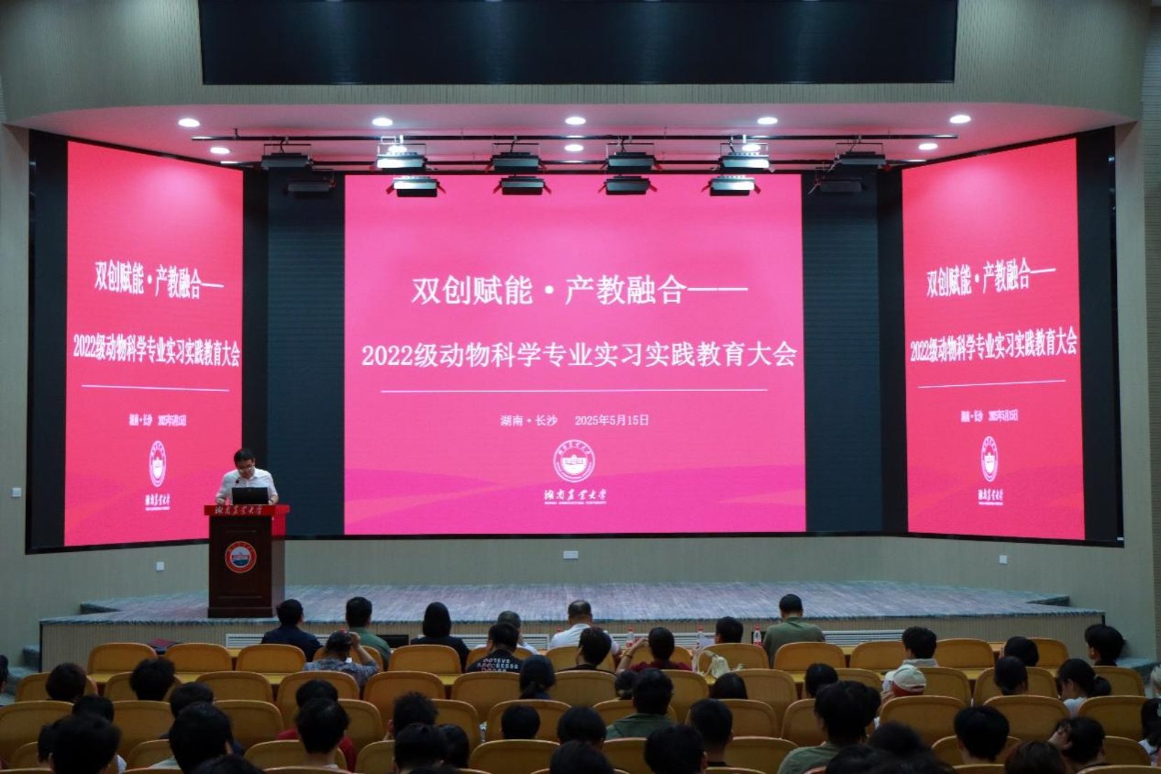 5月15日,zoty中欧体育在大成厅召开“双创赋能 ·产教融合-2022级动物科学专业实习实践教育大会”。长沙市芙蓉区人力资源和社会保障局副局长邓少波、就业促进科科长陈婕璇、zoty中欧体育院长贺喜、党委书记祖智波、副院长何俊、副院长范志勇出席大会,智慧畜牧系主任郭松长、创新创业培训教师代表蒋科、专业教师代表、2022级辅导员、2022级动物科学及动科教育专业全体学生参加大会。大会由院党委书记祖智波主持。