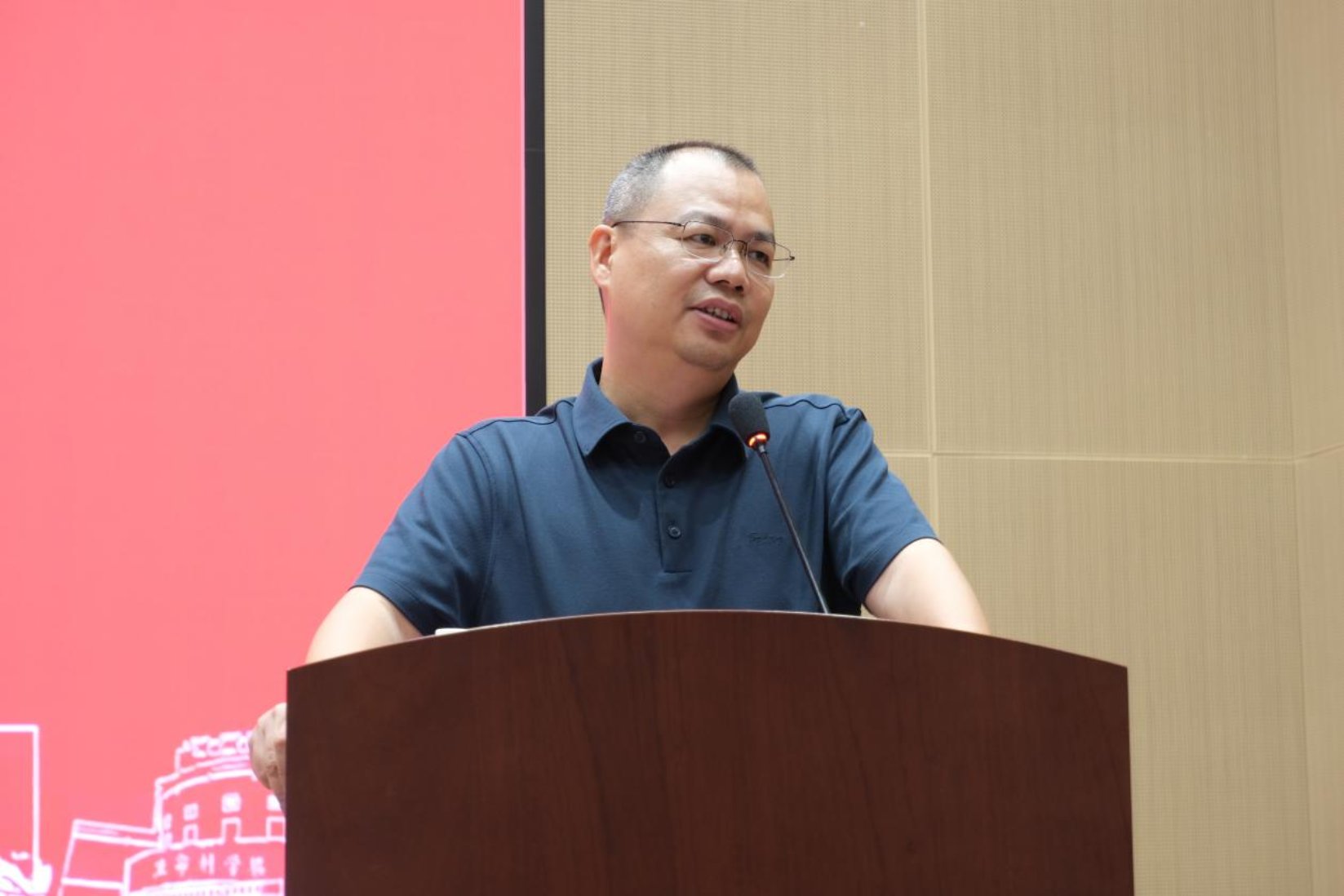 学院院长贺喜教授致欢迎辞。他以自身求学经历为引,对新生提出“三家”的成长期许,一是做“作家”,通过海量文献阅读与模仿练习,掌握学术写作这一知识创造的核心技能;二是做“活动家”,以真诚待人为基,培养沟通协调与团队协作能力,适应科研与社会需求;三是做“科学家”,立足文献积累独立设计研究,在探索中锤炼科研能力,鼓励研究生新生依托岳麓山实验室这一优质平台产出高质量成果。
