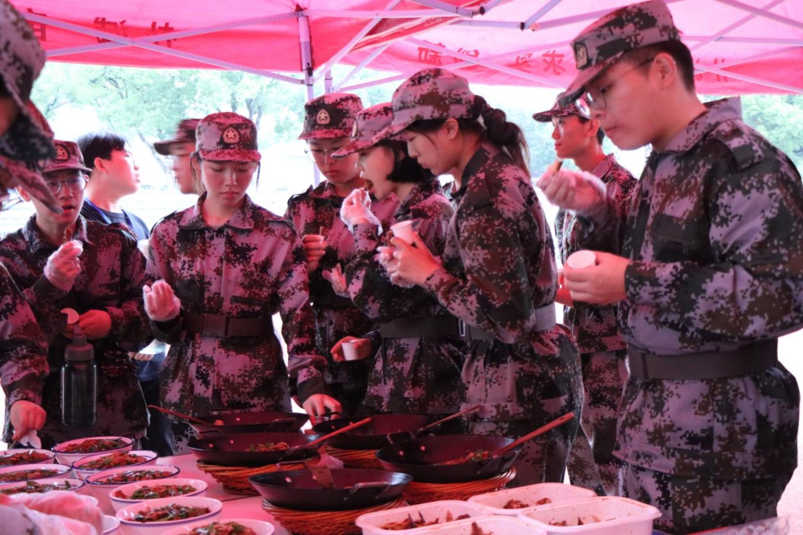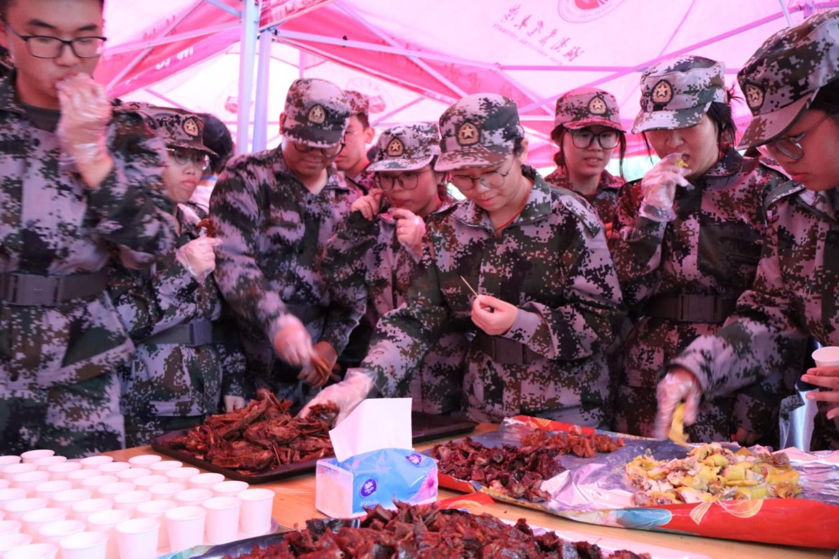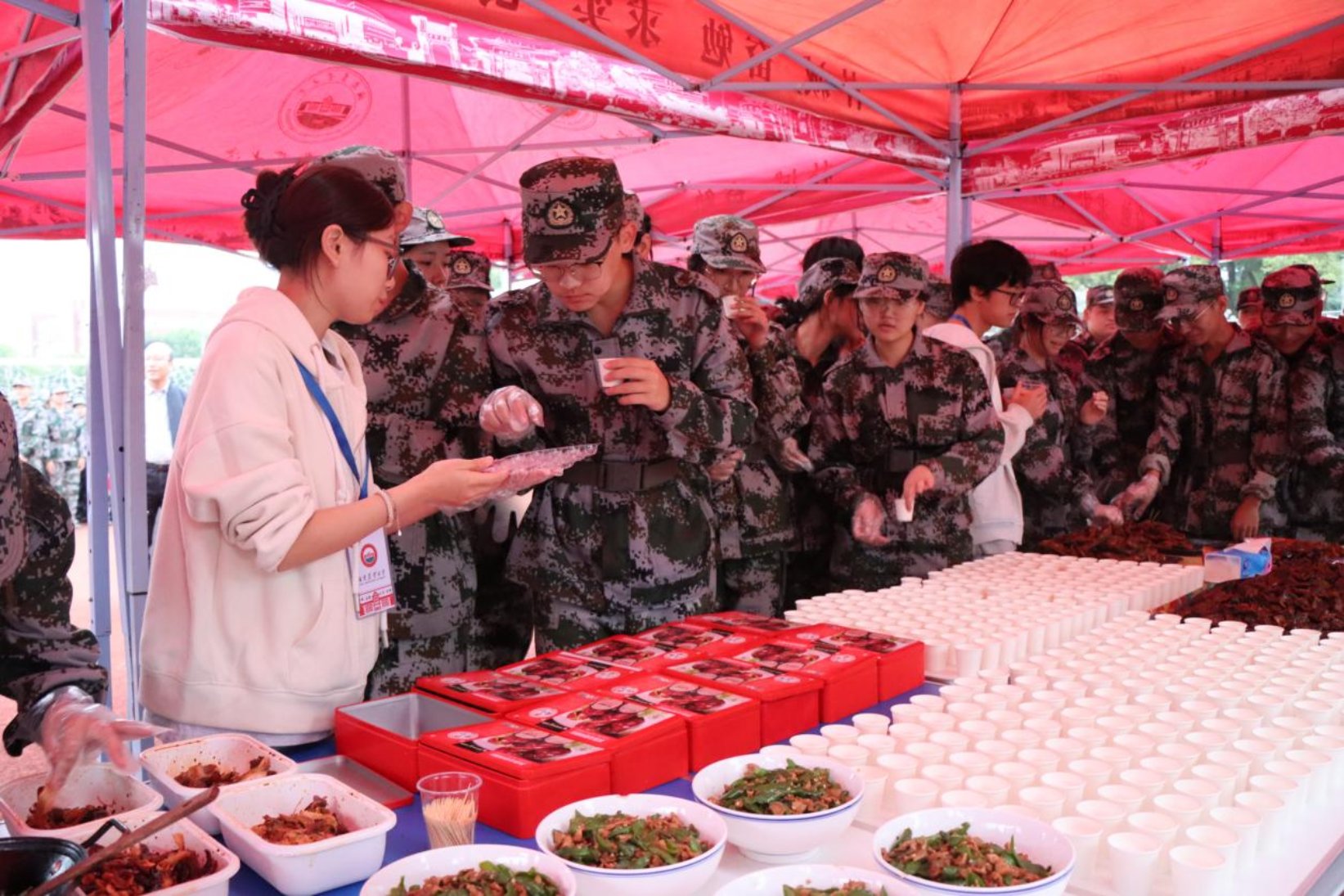 随着现场活动主持人宣布“品鉴活动正式开始”,军训新生各连队有序排队,在工作人员引导下依次品尝各类美食,现场气氛热烈,伴随阵阵欢声笑语。
