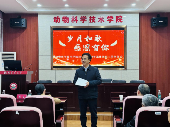 陈弘书记向老教师们致以诚挚的问候和崇高的敬意。他表示,每一位荣休老师的感言是那么情真意切,他们有德有才、有情有趣、有大家大师风范,从他们身上可以找到湖南农大的文化密码。我们要永远尊敬那些为学校建设发展奋斗奉献的老师们,他们才是学校最宝贵的财富。他强调,学院要更加关心关爱老同志,用心用情为退休教职工多办实事、多办好事,为老有所学、老有所为、老有所乐创造更好条件。