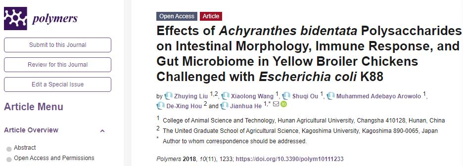 湘约农牧学院团队研究进展第8期:我院贺建华教授团队在牛膝多糖和血根碱促进黄羽肉鸡生长的营养调控研究取得新进展